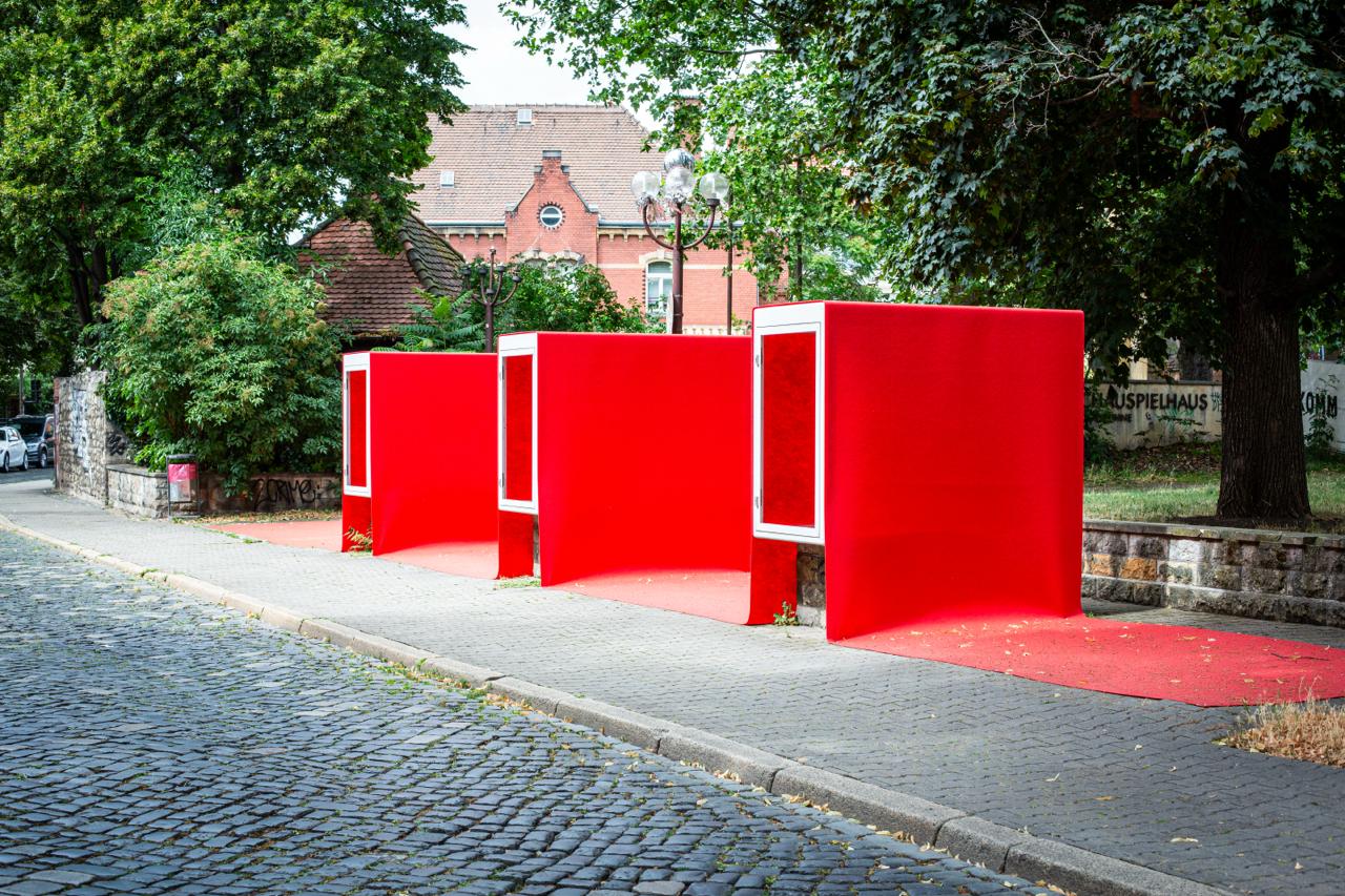 Zeitgenössische Kunst mitten im Stadtraum: In den drei ehemaligen Vitrinen des KulturQuartiers Schauspielhaus entstehen seit 2016 wechselnde, ortsspezifische Arbeiten. Als kleinster Ausstellungsraum Erfurts laden die StadtRaumBoxen dazu ein, Kunst im Vorübergehen zu entdecken und immer wieder neu mit ihr in Dialog zu treten.