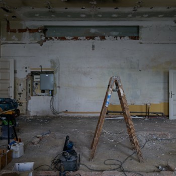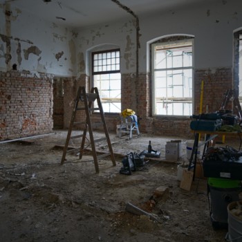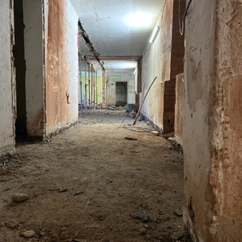 Die Abbrucharbeiten der Firma BAC schreiten voran und haben das Erdgeschoss sowie das erste Obergeschoss erreicht. Die Sanitäranlagen im Erdgeschoss sind nicht mehr sichtbar; stattdessen ist eine große Freifläche erkennbar, die künftig Teil der Gastronomie werden soll. Der helle, großzügige Raum verfügt bereits über neue Fenster der Firma Felsberg. Im ersten Obergeschoss, in den ehemaligen Betriebsbüros des Schauspielhauses, ist sichtbar, dass einige Wände entfernt wurden. Auf dieser Freifläche entsteht einer der neuen Kinosäle für unseren Partner KINOKLUB Erfurt.