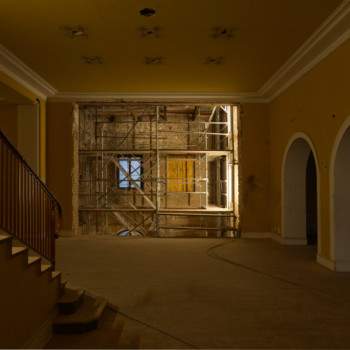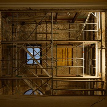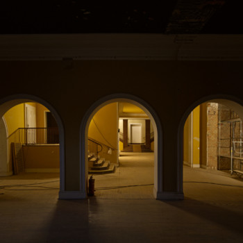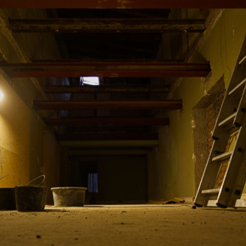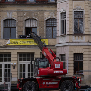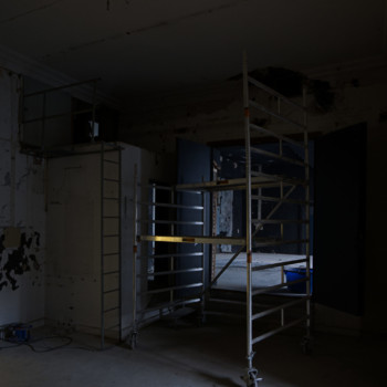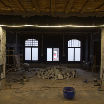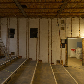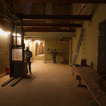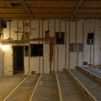 Im November haben wir uns von der Kleinen Bühne verabschiedet, und die Bauarbeiten sind in die Villa eingezogen. Nach einem erfolgreichen Subbotnik mit zahlreichen Genossenschaftsmitgliedern konnte das Haus geräumt werden, sodass die Abbruch- und Entsorgungsfirma BAC Platz bekam. Der Rückbau der Kleinen Bühne wurde durchgeführt, und auch im künftigen Tanzsaal 2 wurde der alte Putz entfernt, um die Flächen für die kommenden Ausbauarbeiten vorzubereiten.